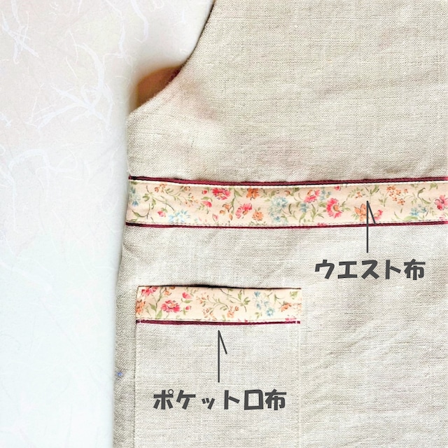 キッズエプロンの腰ひもは、2種のご準備あり