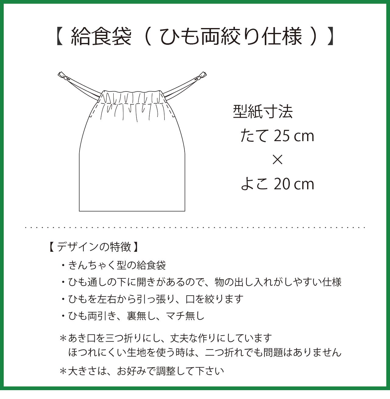 ■ 型紙の大きさ(本体の中心丈と巾 *ひもは含まず)