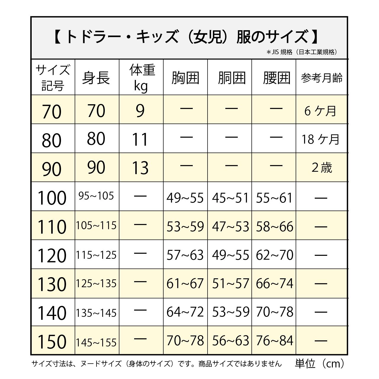 ・LLサイズ(目安:140~150 cmサイズ):前中心丈 70cm / 巾68 cm