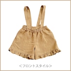 ・可愛らしさ満点のサスペンダー付きフリルショートパンツです