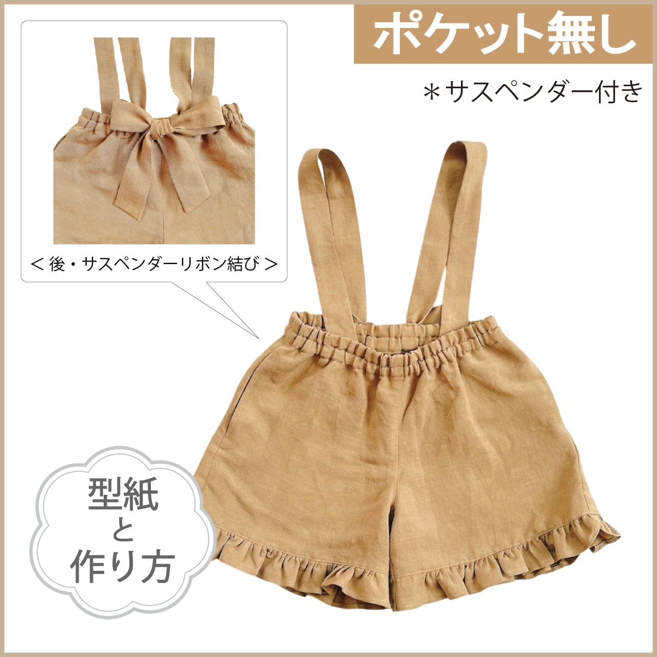 ↓↓ サスペンダー付きフリルショートパンツ:ポケット無し(型紙のみ)の販売ページは、こちらをクリック ↓↓
