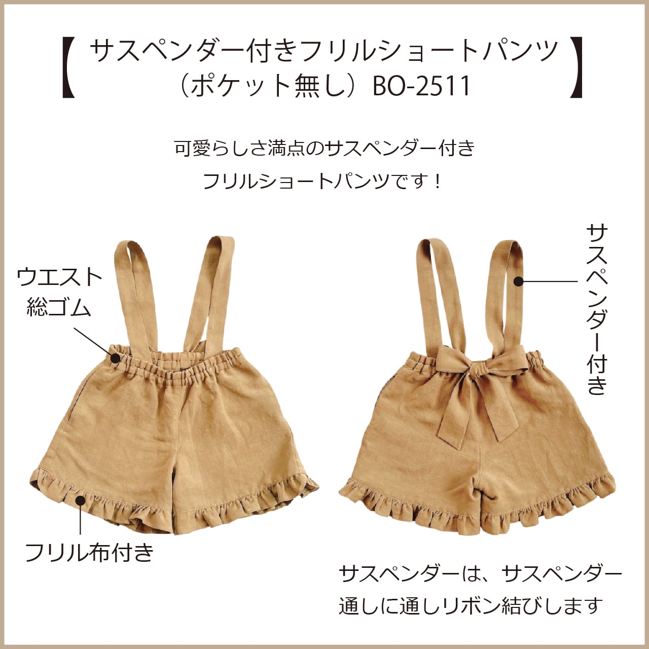 サスペンダー付きフリルショートパンツ:ポケット無し(型紙と作り方のセット)型品番:BO-2511