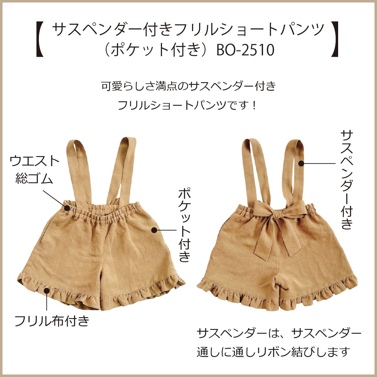 【 アウトレット型紙:100サイズ(型紙のみ)】サスペンダー付きフリルショートパンツ(ポケット付き)型品番:BO-2510