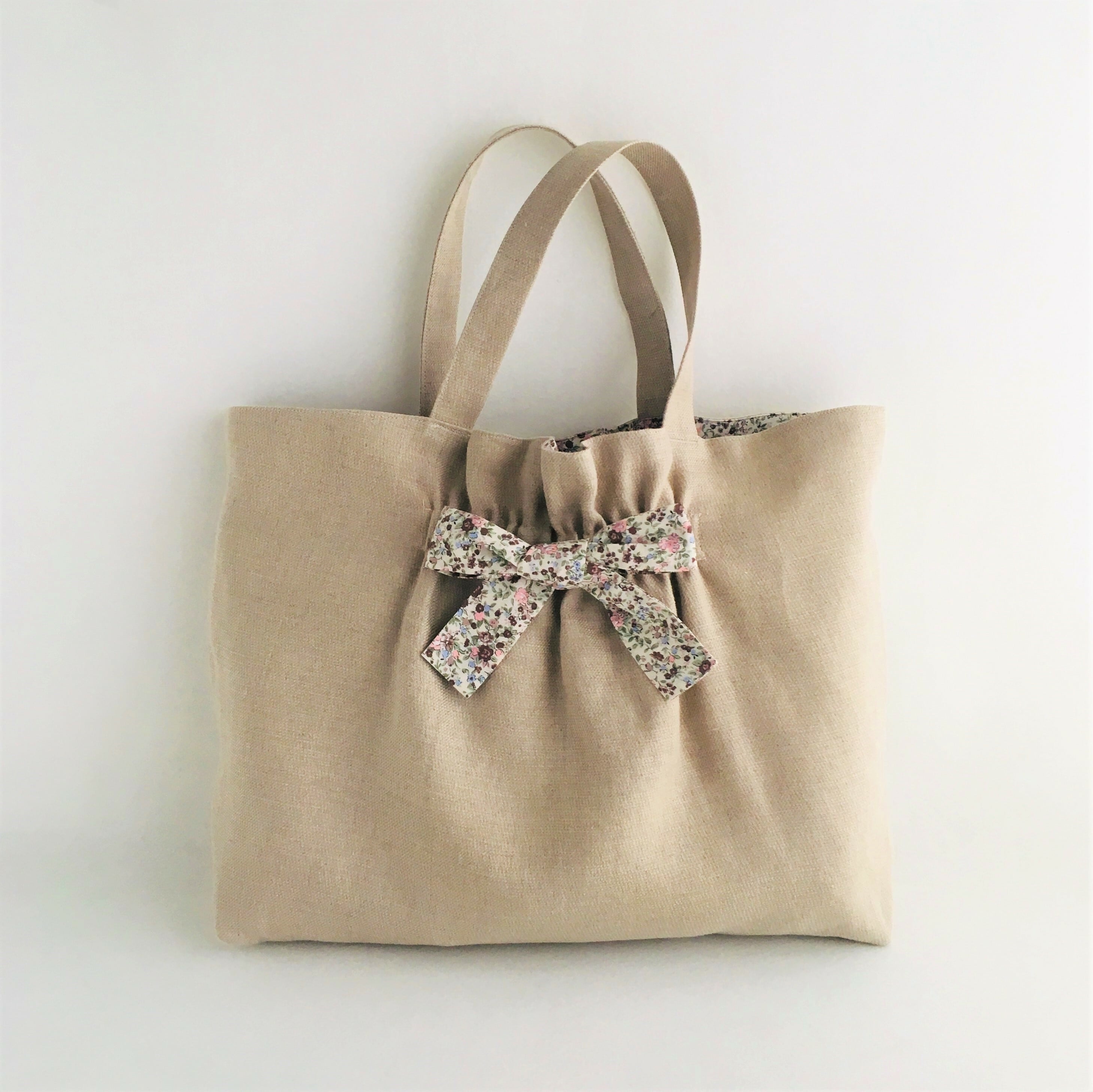 ・バッグ口から裏地が見えるので、裏地にプリント入りの布地を使うとカワイイですよ