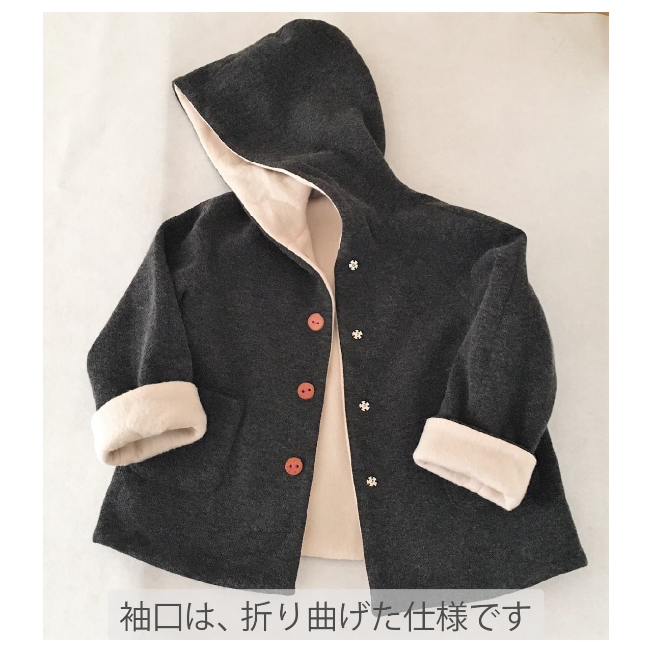 *前と後身頃、フードは、表地も裏地も同じ型紙でお作りしています