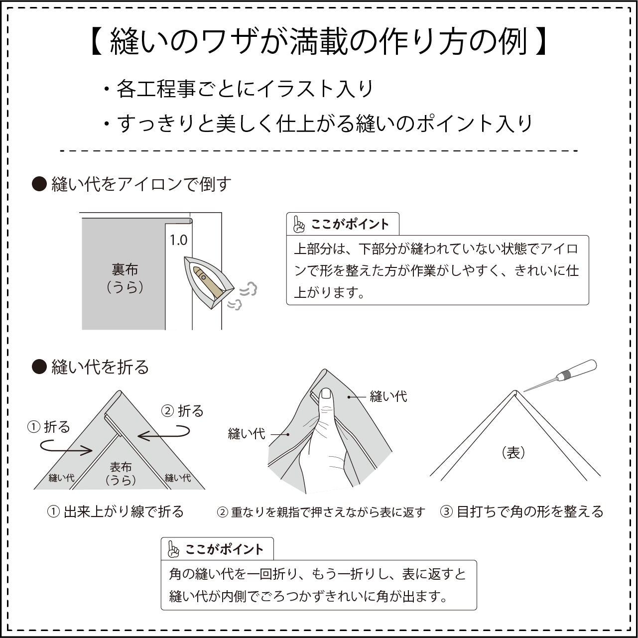 布地は、ブロード、麻、コーデュロイ、ウールなどの薄手~中肉の厚みがおすすめです