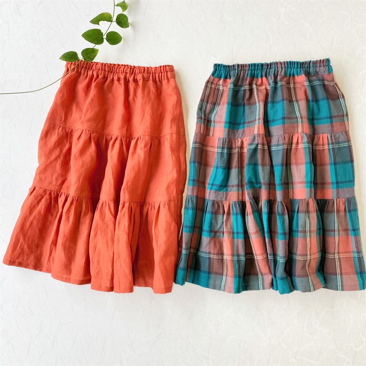 ・ギャザーいっぱいのロング丈のティアードスカート