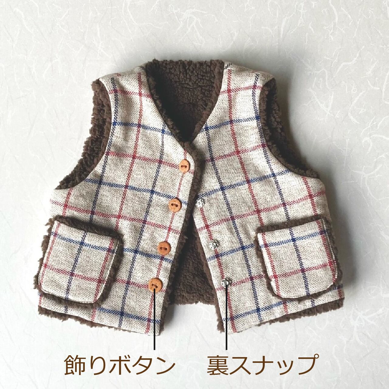 裏地にボアを使った暖かいベスト